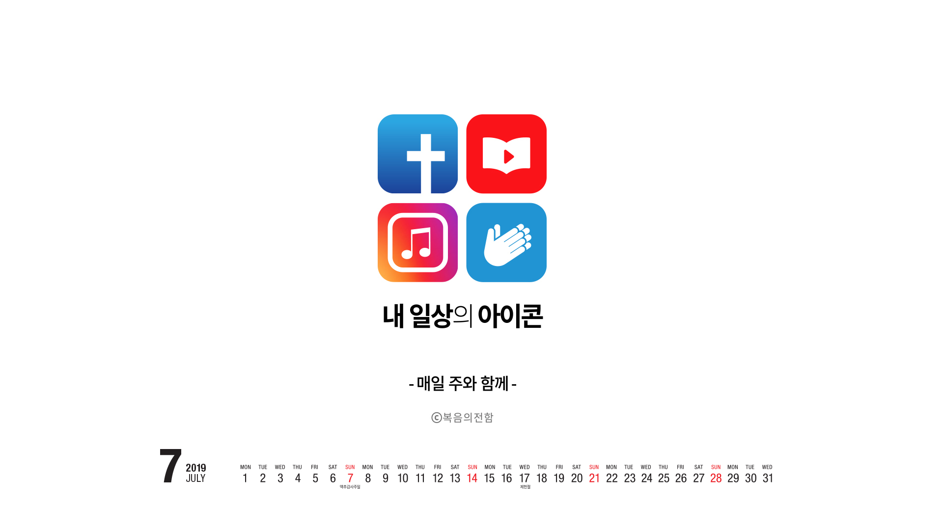 이에 7월 심플 ‘내 일상의 아이콘’에는 하루에도 수시로 접속하는 모바일 앱이나 인터넷상의 아이콘처럼, 크리스천인 우리의 영성을 위해 삶 속에서 하나님을 구하고 경배하는 일이 날마다, 매순간마다, 모든 상황 속에서 항시 일어나면 좋겠다는 바람을 담았습니다.