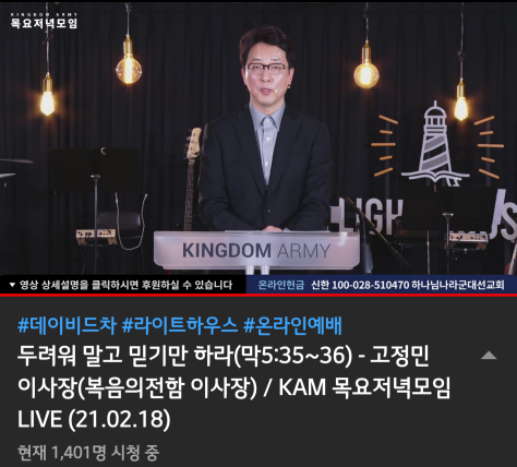 지난 2월 18일 목요일 저녁 KAM선교회 온라인 저녁기도회에서 심부름 했습니다.