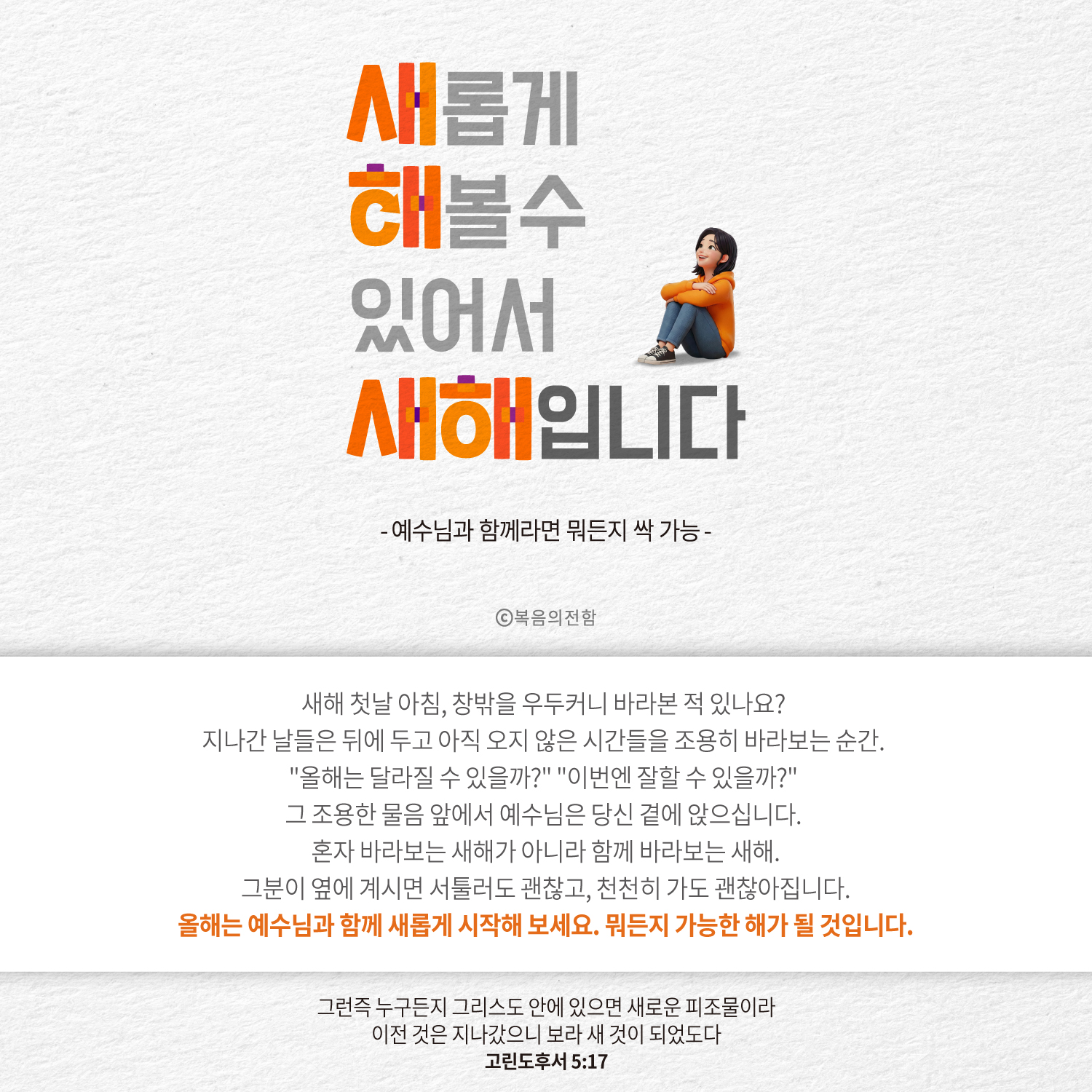 이전 것은 지나갔으니 보라 새 것이 되었도다 <고린도후서 5:17>