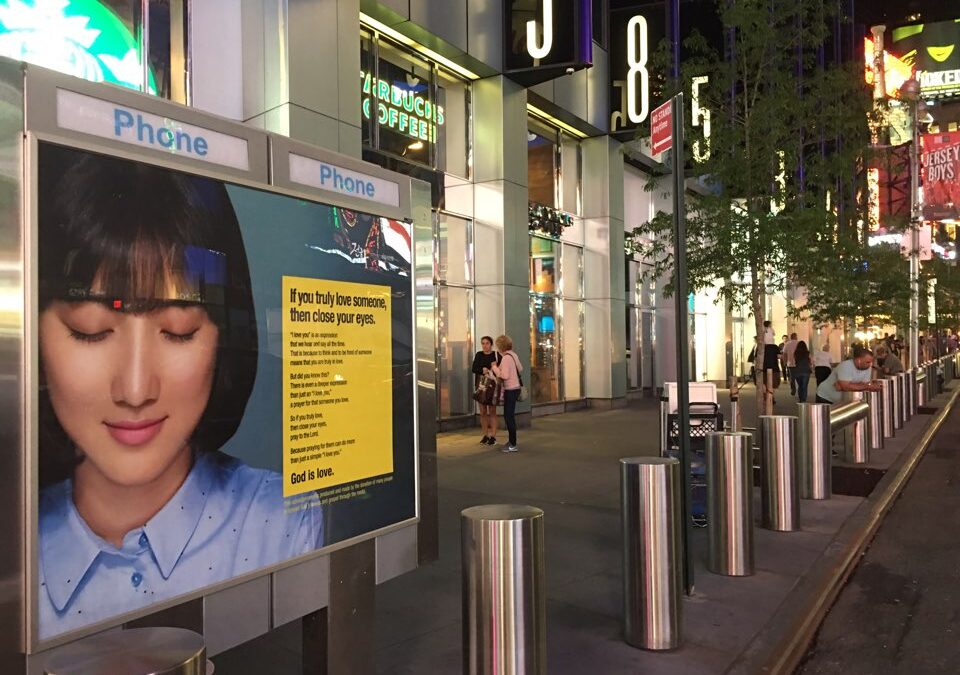 세계의 수많은 브랜드 광고 틈 사이로 그 어떤 브랜드 가치와 비교할 수 없는 하나님을 광고하고 있습니다.