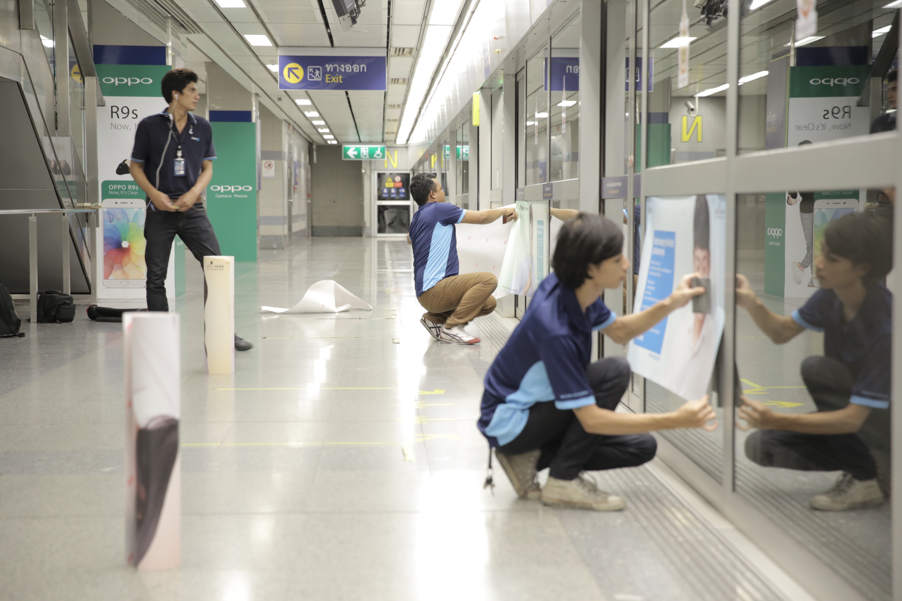 이렇게 지하철역에 하나하나 정성스럽게 붙여져 스크린도어에 모두 부착 완료!