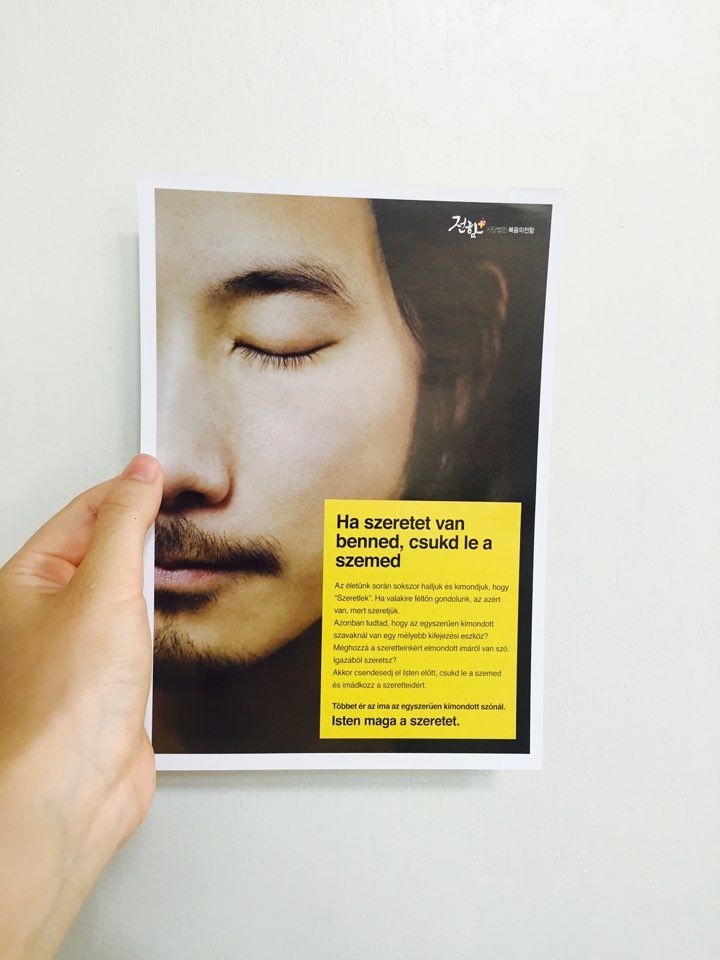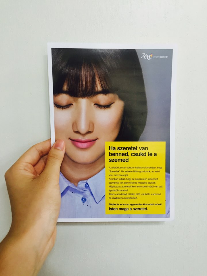 복음의전함은 작년 4월부터 협력이 필요한 교회에 전도지와 포스터를 나누고 있습니다. 복음광고를 활용한 전도지가 필리핀 타칼로그어, 일본어에 이어 헝가리어로 번역되었습니다. 헝가리 kim pal선교사님을 통해 한국에서 헝가리 부다페스트장로교회로 잘 전달 되었는데요.