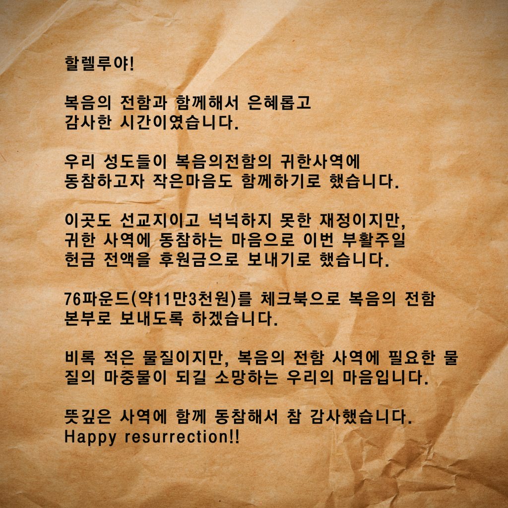 2) 스코틀랜드 홀리그라운드커뮤티니 교회에서 헌금을 보내주셨어요