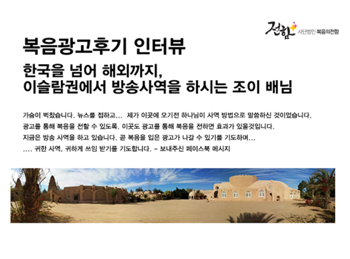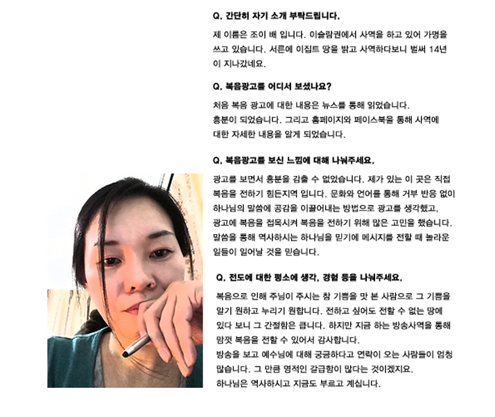 복음의전함을 사랑하시는 방송사역자 조이 배 님 이십니다.