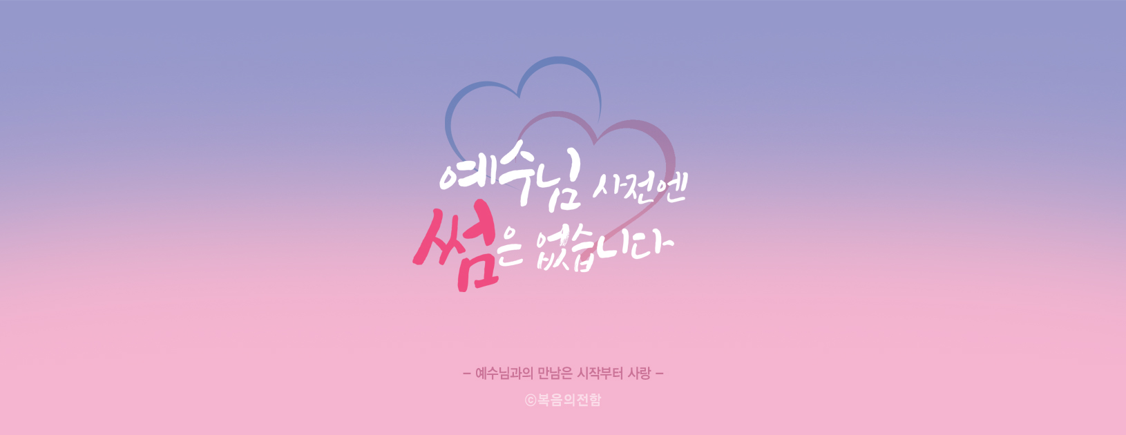※ 복음의전함에서 제공하는 이미지는 개인, 또는 교회에서 비영리 목적으로 사용할 경우에 한해 사전 허락없이 사용 가능합니다. 단, 2차 편집이나 특정부분 오려서 사용, 카피라잇 제거 등을 통한 이미지 변형 또는 수정은 불가하며 이미지에 표기된 출처(ⓒ복음의전함)를 삭제해서는 안 됩니다.