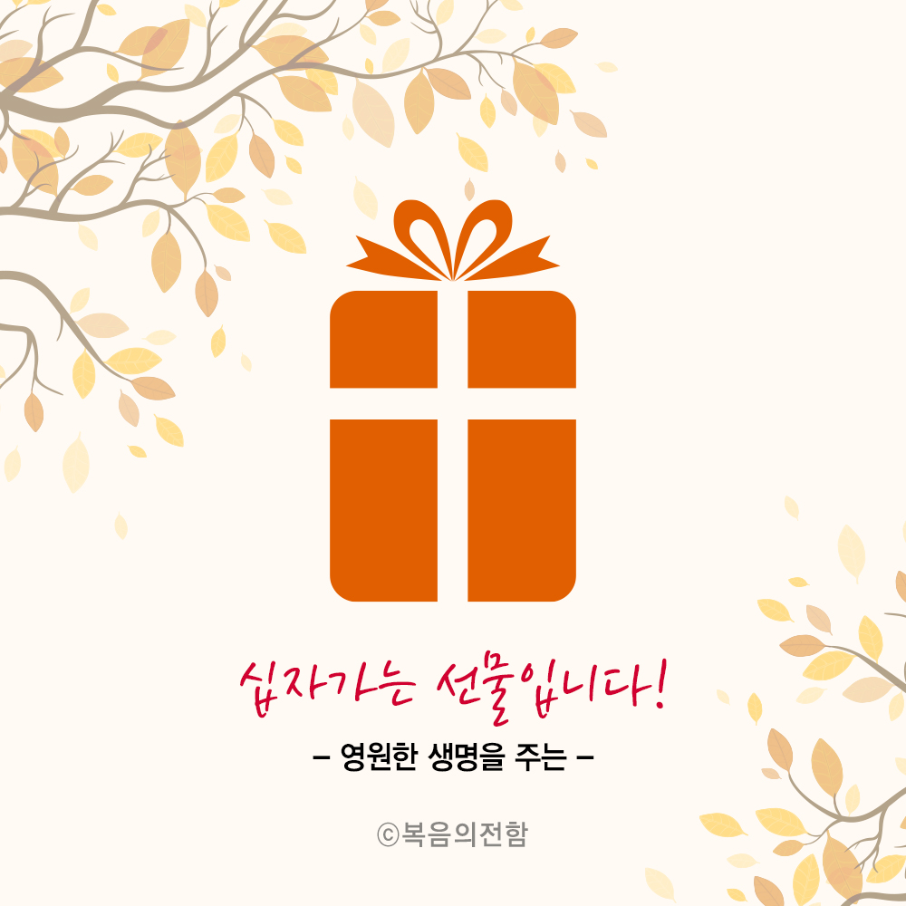 이 귀한 선물을 우리만 간직하기 아깝지 않으세요? 믿지 않는 지인들에게 많이 많이 나눠주세요!^^