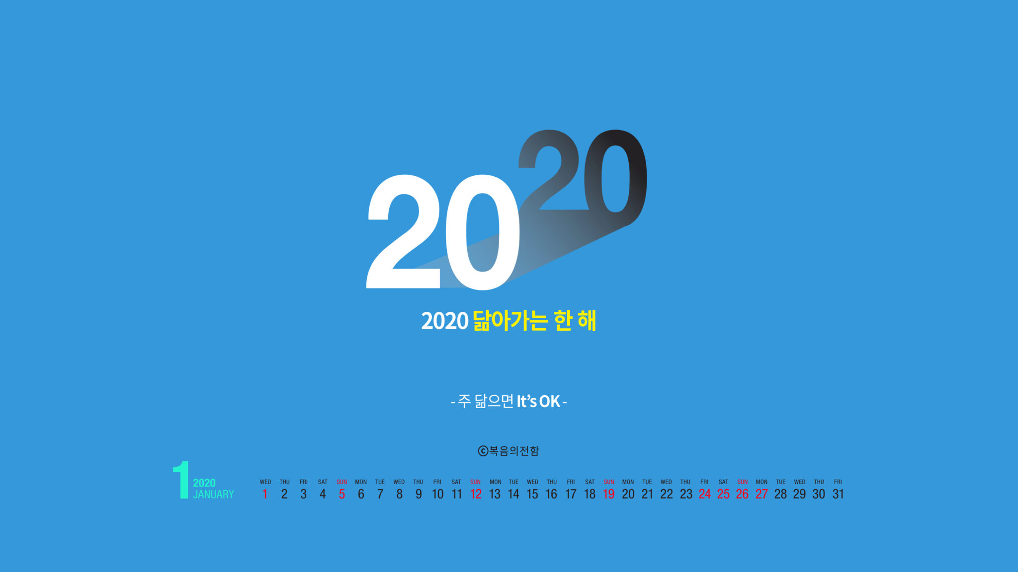 2020년 1월 심플은 새해를 여는 첫 달인 만큼 ‘2020’이라는 숫자를 모티브로 그림자를 활용, ‘올 한해 주님을 닮아가면 괜찮다’라는 의미를 담았습니다.