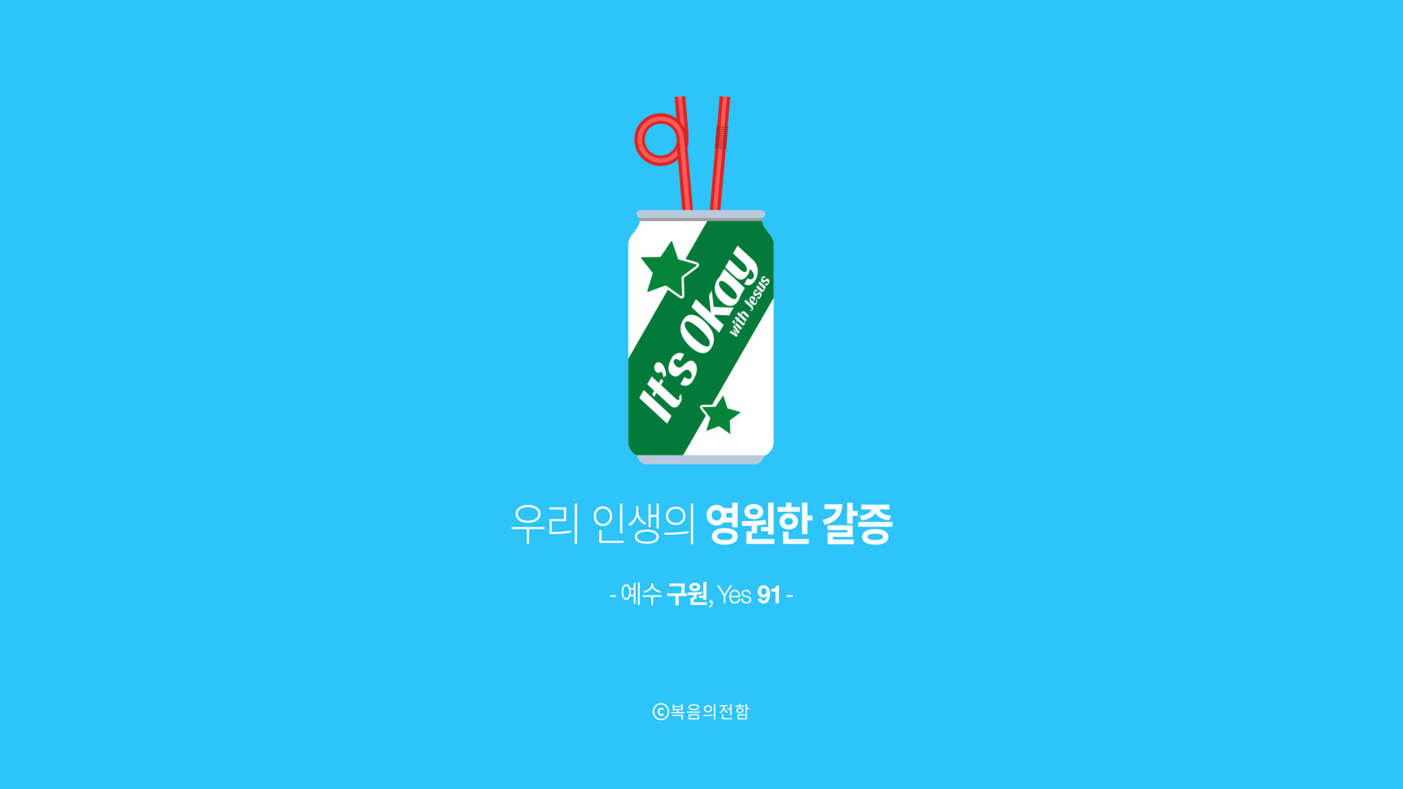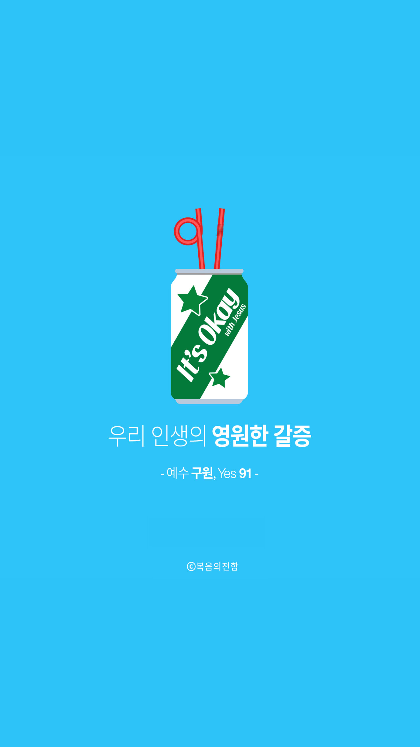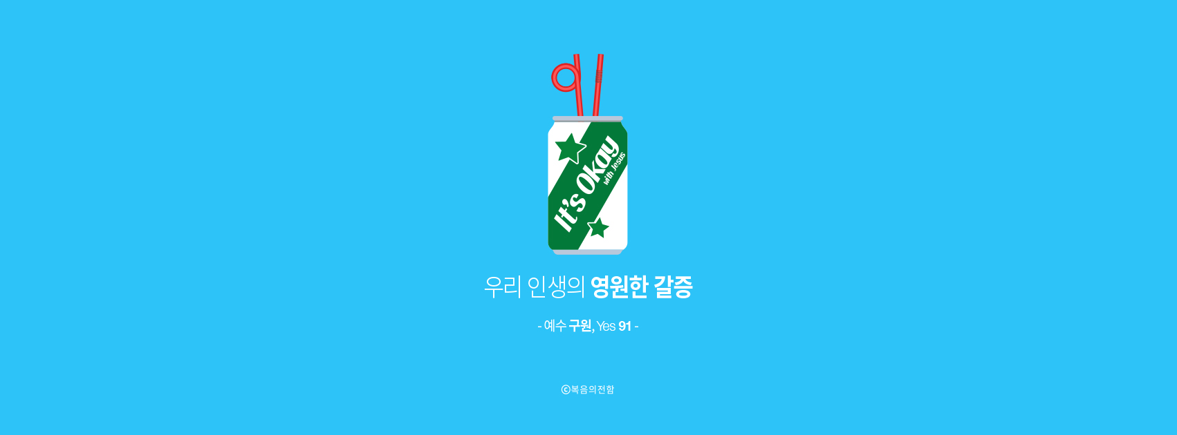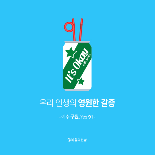 6월의 심플 ‘예수 구원, Yes 91’은 삶에서 느껴지는 공허함은 ‘오직 예수님의 구원’으로만 해소될 수 있다는 의미를 담았습니다. 갈증이 날 때 그 답답함을 시원하게 없애주는 청량음료처럼 말이죠.