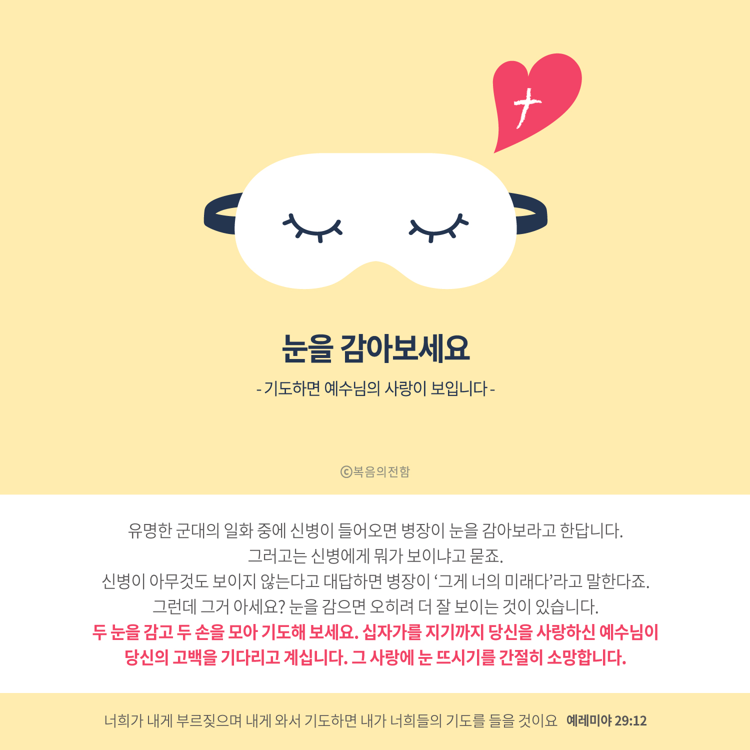두 눈을 감고 두 손을 모아 기도해 보세요.